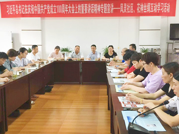 根据党史学习教育工作部署要求,近日,凤灵社区党委与花神丝绸党支部联合开展了习近平总书记“七一”重要讲话精神专题宣讲活动。