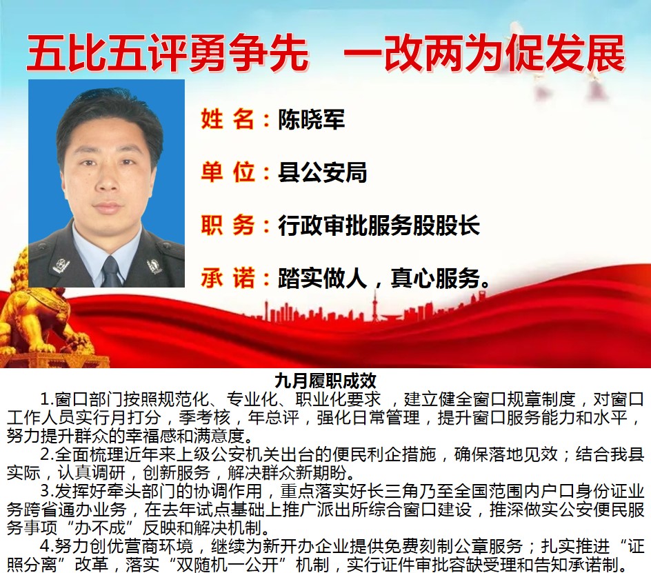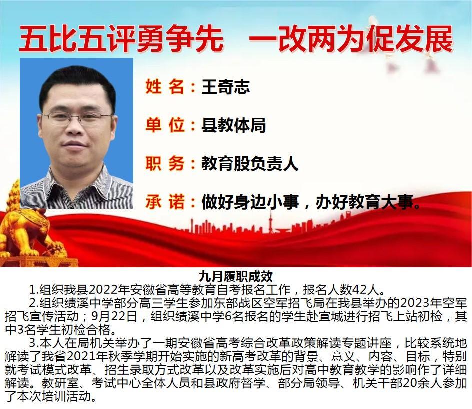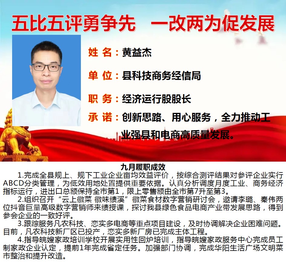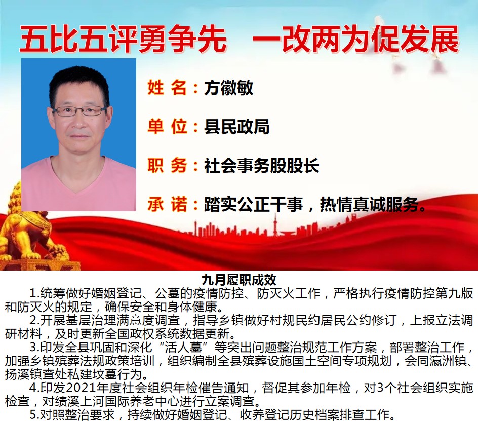 绩溪先锋本期将公示综合管理类15名参评对象9月份履职成效