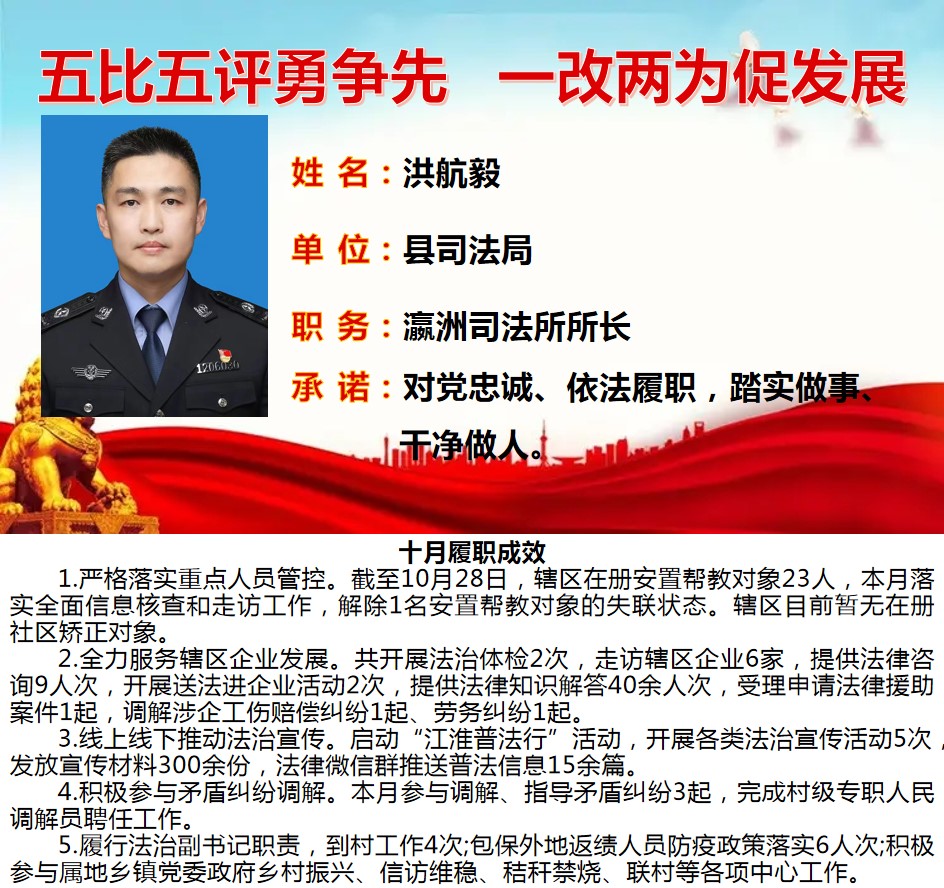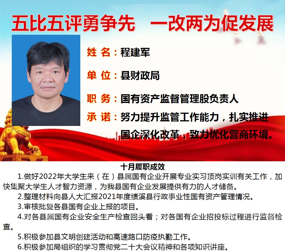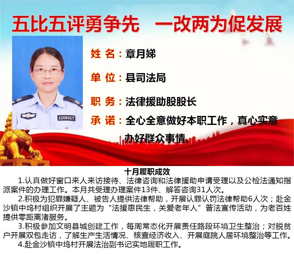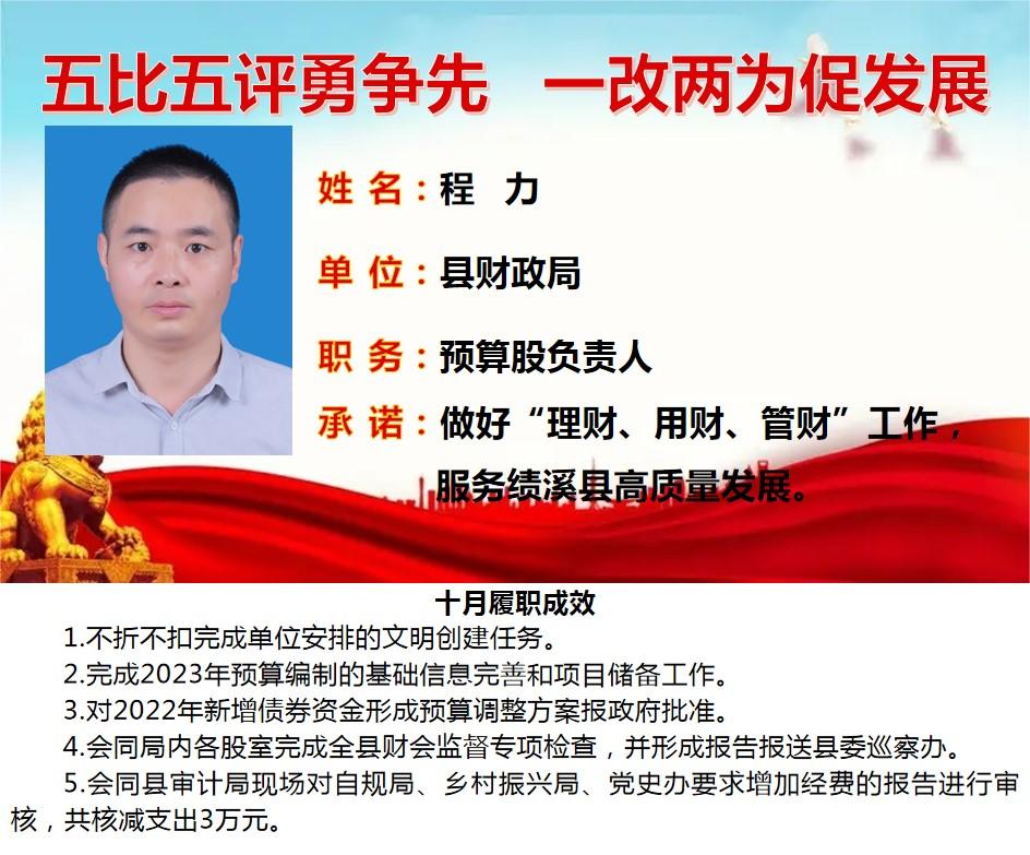 绩溪先锋本期将公示综合管理类18名参评对象10月份履职成效