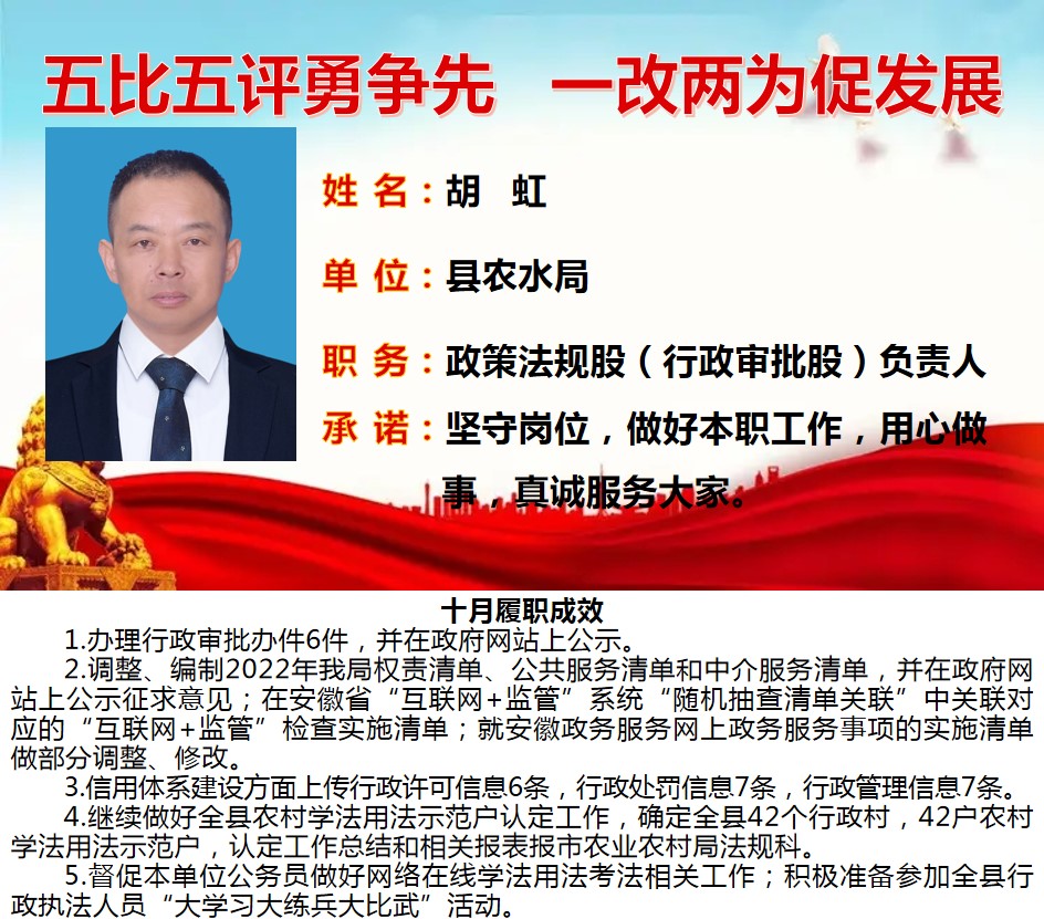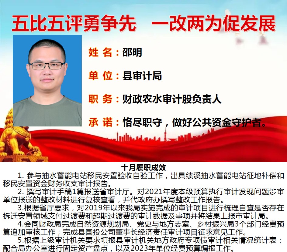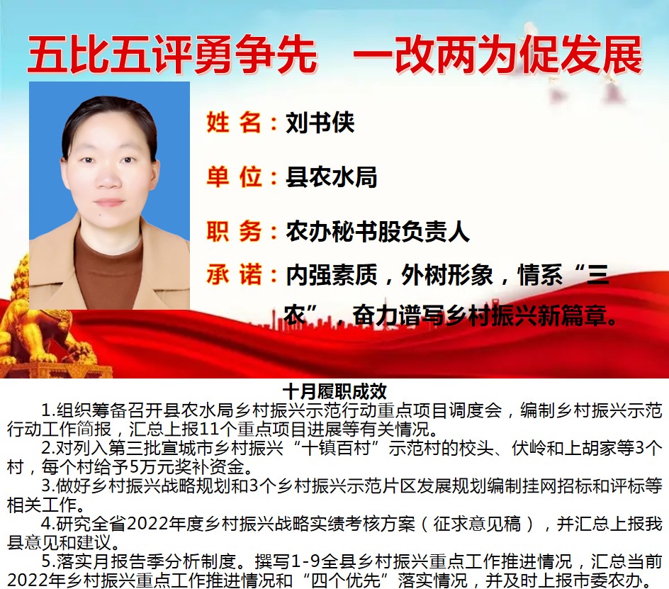 绩溪先锋本期将公示综合管理类17名参评对象10月份履职成效