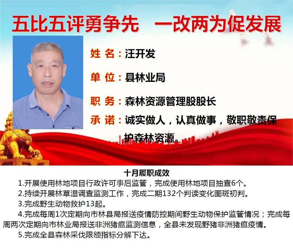 为深入学习贯彻习近平总书记关于作风建设重要论述、落实省委“一改两为五做到”要求,着力解决个别干部作风中“虚、躲、冷、粗、假”等顽瘴痼疾,我县组织开展了县直单位百名股长“五比五评”活动。根据活动《实施方案》要求,现将2022年度100名参评对象10月份履职成效分期进行公示。