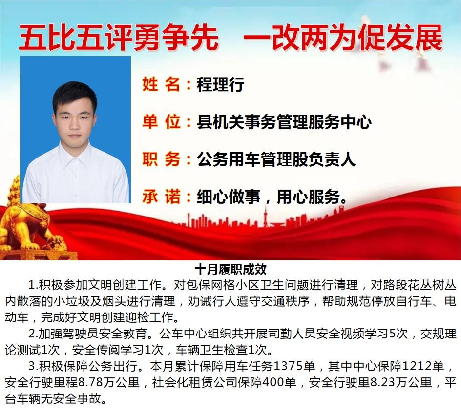 绩溪先锋本期将公示综合管理类16名参评对象10月份履职成效