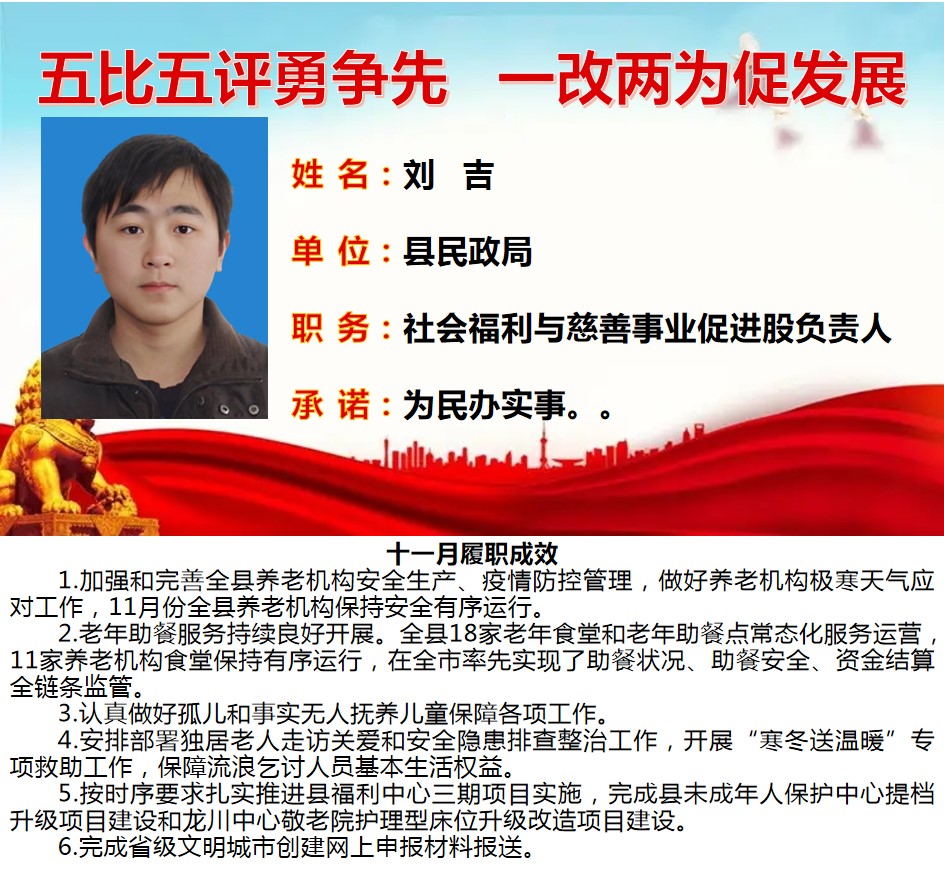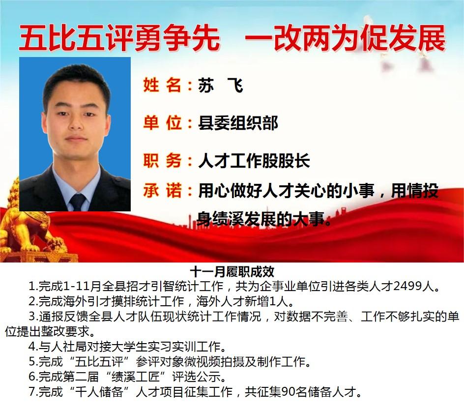 绩溪先锋本期将公示综合管理类15名参评对象11月份履职成效