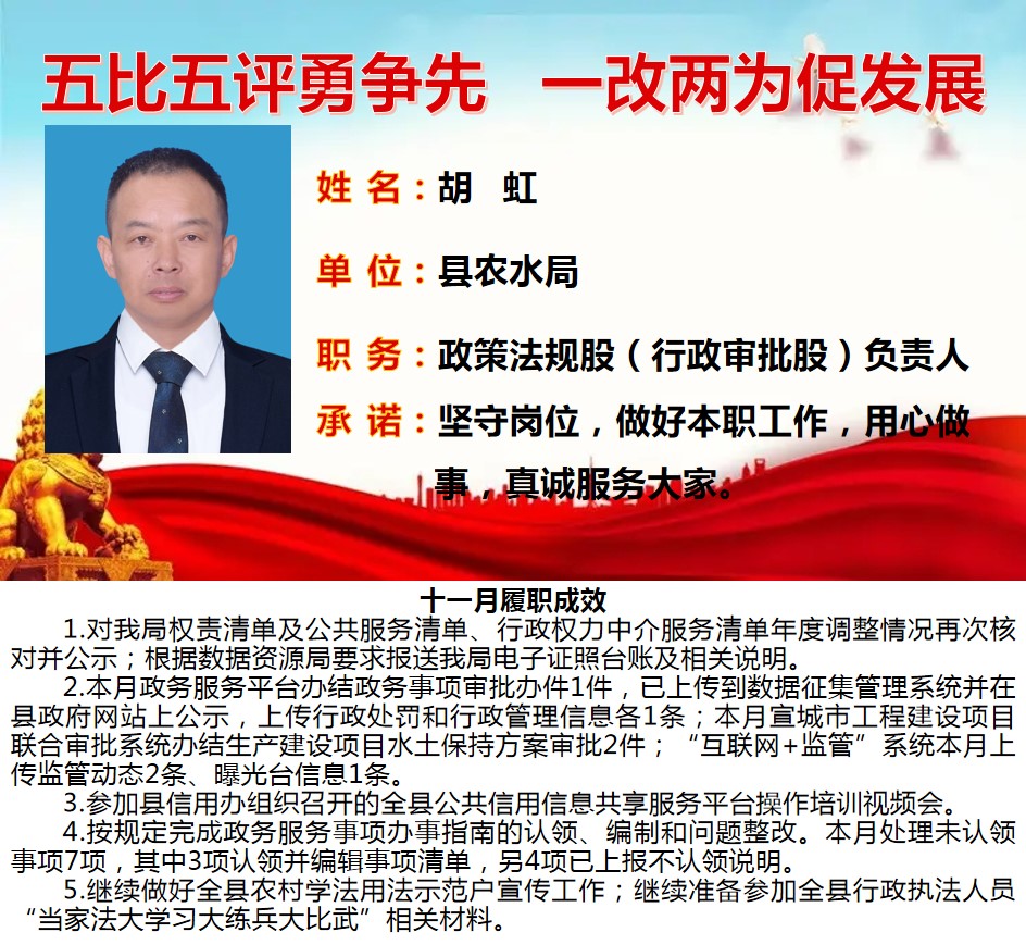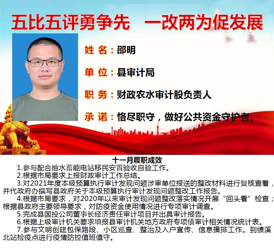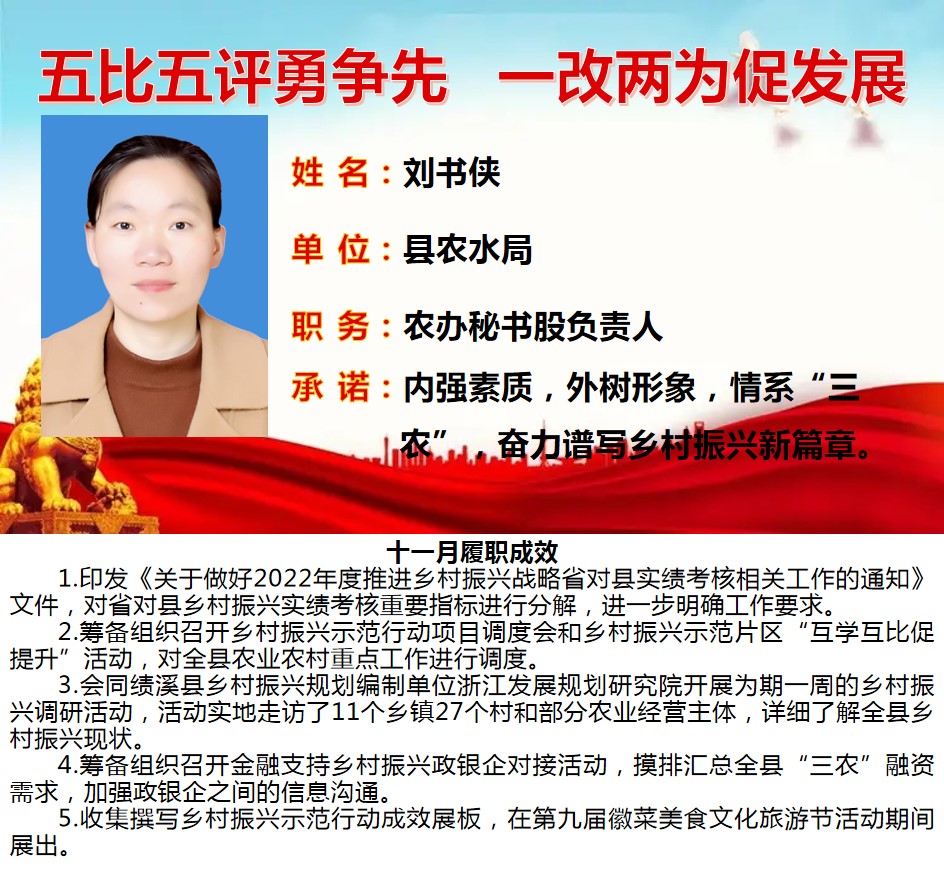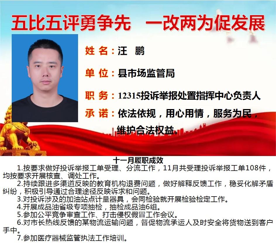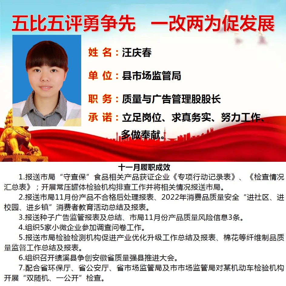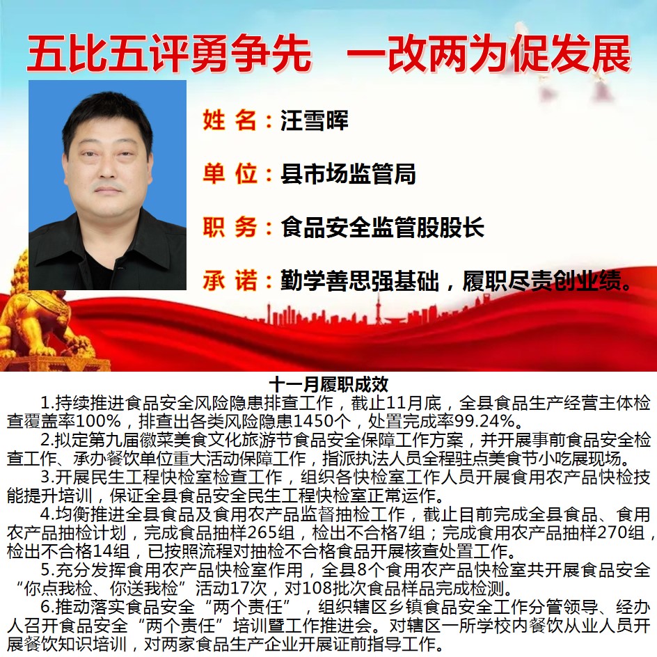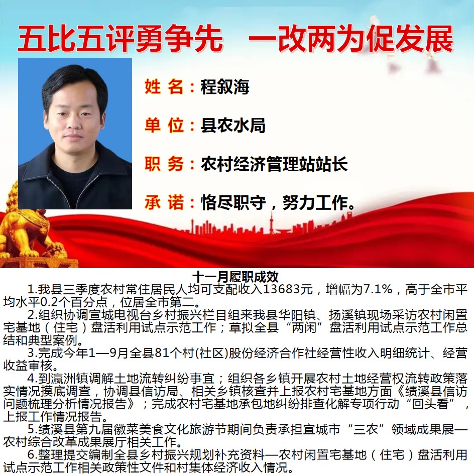 绩溪先锋本期将公示综合管理类17名参评对象11月份履职成效