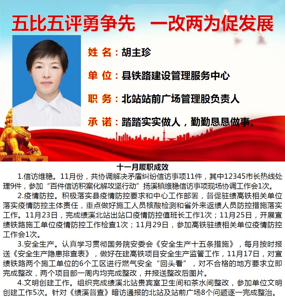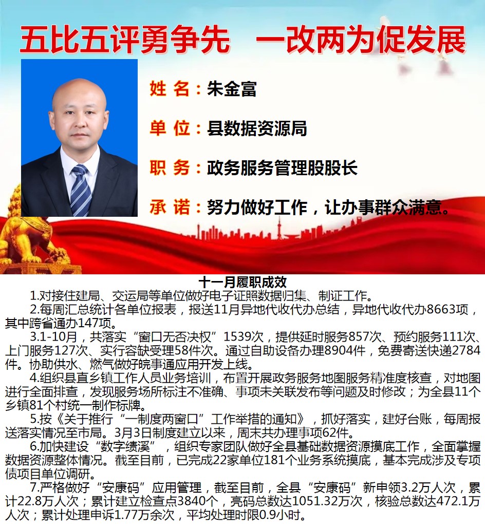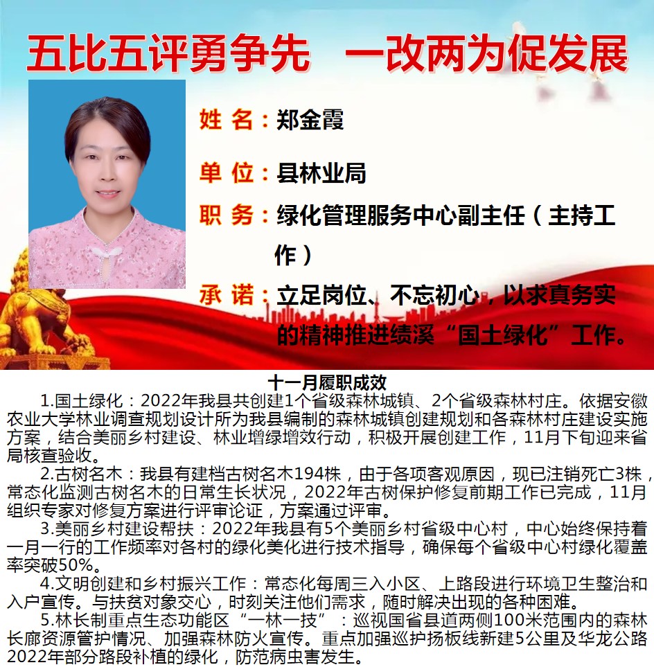 绩溪先锋本期将公示综合管理类16名参评对象11月份履职成效