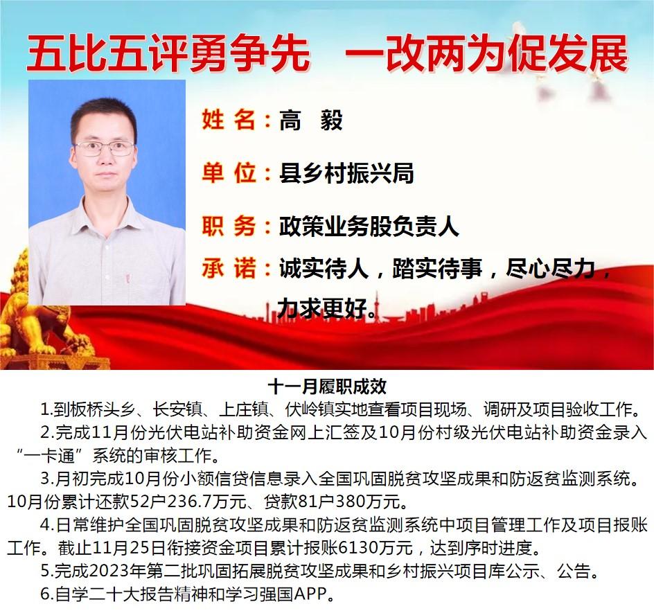 为深入学习贯彻习近平总书记关于作风建设重要论述、落实省委“一改两为五做到”要求,着力解决个别干部作风中“虚、躲、冷、粗、假”等顽瘴痼疾,我县组织开展了县直单位百名股长“五比五评”活动。根据活动《实施方案》要求,现将2022年度100名参评对象11月份履职成效分期进行公示。