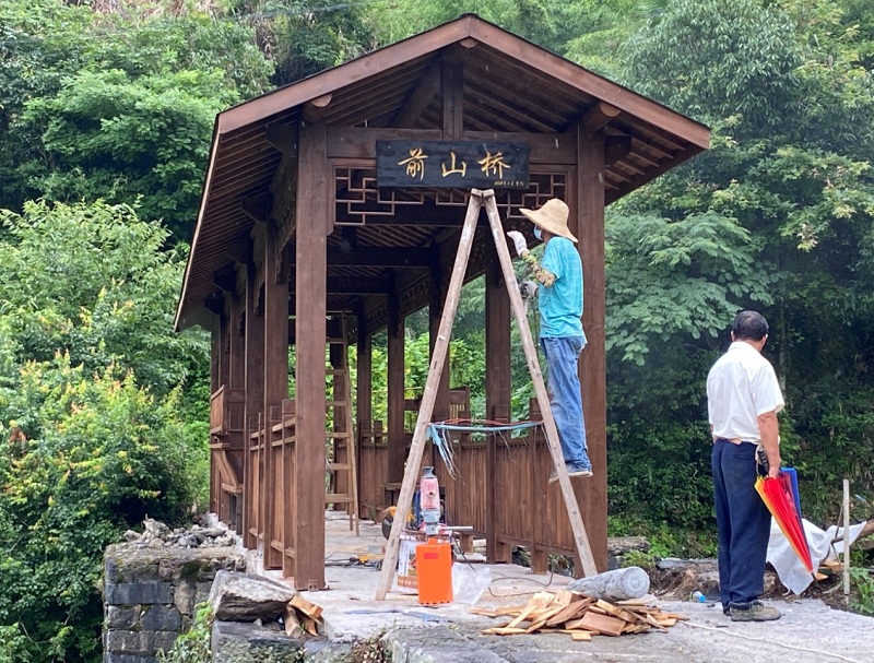 走进前山桥改造加固施工现场,一副忙碌而有序的工作画面呈现在我们面前,施工人员按照分工有条不紊地进行施工。根据修复方案,本次修复并不只是简单的在桥面上加装栏杆,而是综合考虑与周边环境的协调,结合下溪村正在实施的美丽乡村建设规划采用仿古建筑形式,在桥面上修建木制亭桥,不但方便了百姓出行还让小桥流水人家从画里走入现实,力求艺术与安全的完美统一,从而在保障村民安全出行的同时,为下溪村美丽乡村建设增光添彩。