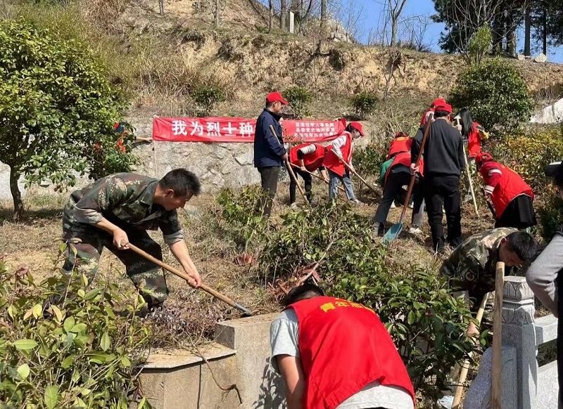 缅怀革命先烈,传承红色基因。3月11日,在植树节来临之际,绩溪县退役军人事务局联合县委党史地方志室、县新四军历史研究会干部职工前往陈村烈士陵园开展“我为烈士种棵树”活动,通过植树的方式祭扫并缅怀长眠于此的英烈,表达哀思。