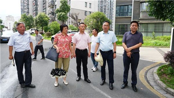 肖阳一行来到来苏社区和谐华庭小区,实地查看小区基础设施改善提升、车辆停放、非机动车充电桩设置等情况,现场听取汇报、指出问题、提出要求。