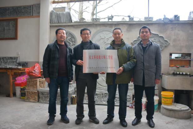 青砖与刻刀共舞,泥浆同艺术齐飞。绩溪徽州砖雕工艺美术师宋文革以其精湛的技艺获评宣城市技能大师工作室。2018年3月1日下午,绩溪县委组织部副部长、县人社局局长汪宝华一行三人到长安镇庄团村对砖雕大师宋文革进行市级技能大师工作室授牌。