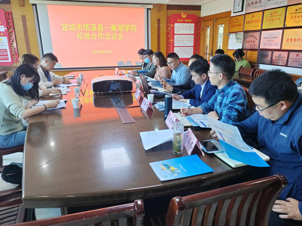 在校地合作洽谈会上,首先与巢湖学院团委领导班子观看了绩溪文旅宣传片,推介宣传绩溪风土人情、文化特色等。荆州乡党委委员、组织委员胡立青和华阳镇党委委员、组织委员唐丹协乡镇团委负责人,重点围绕乡镇基本情况、县引才政策、人才需求和“三实”基地建设等进行详细介绍,针对荆州农业文旅、华阳城关重镇的不同资源特色提出需求。