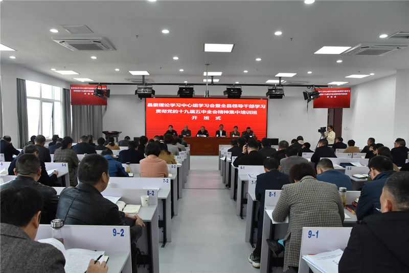 黄德泉在开班式讲话中指出,党的十九届五中全会是在我国决胜全面建成小康社会取得决定性成就、“两个一百年”进入历史交汇点的关键时期,召开的一次具有里程碑意义的重要会议。全县上下要切实把思想和行动统一到习近平总书记的重要讲话精神上来,认真落实省委、市委的部署要求,努力在学懂弄通做实党的十九届五中全会精神上下功夫,重点把新发展阶段、新发展理念、新发展格局“三个关键词”牢记于心、践之以行,推动全县各项事业迈上新台阶。