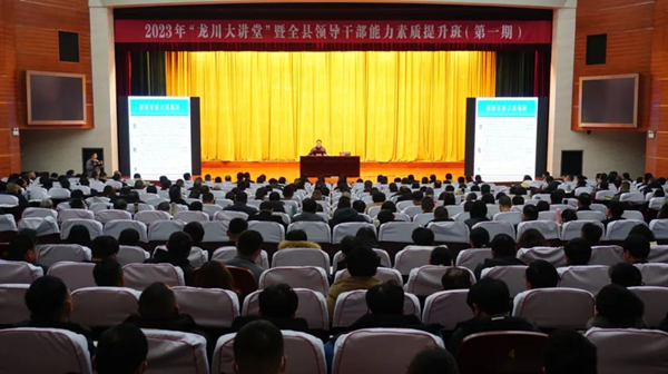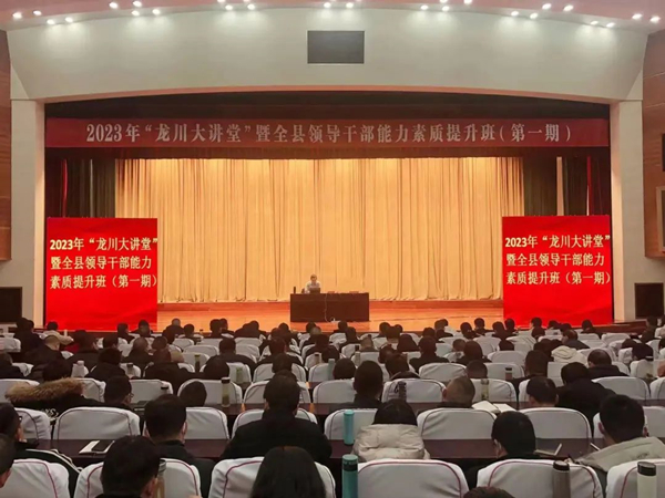 为深入学习贯彻党的二十大精神,落实省委、市委工作要求,聚焦“追赶江浙、争先江淮”目标,推动实施“四大行动”和“六个年”建设,2月11日,我县举办“龙川大讲堂”暨全县领导干部能力素质提升班,邀请专家学者来绩讲座授课。肖阳、卢东林、凌成华、许晓辉、何峻等县四大班子领导和其他在职县级干部在现场聆听讲座。