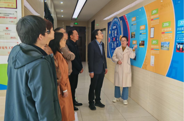 交流团先是来到安徽正兴生物医药科技有限公司。公司负责人详细介绍了企业的发展现状、技术需求和未来规划。安徽农业大学材料与化学学院的专家们凭借专业知识和丰富的科研经验为企业在生物科技领域提出建议,并就共建产学研合作平台、开展联合科研项目等方面与企业进行了深入洽谈。双方一致认为,通过校地合作,能够实现资源共享、优势互补,助力企业突破技术瓶颈,推动产业升级。