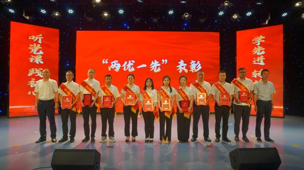 7月1日下午,全县“听党课、践初心、学先进、转作风”暨“两优一先”表彰活动在县融媒体中心演播厅举行。