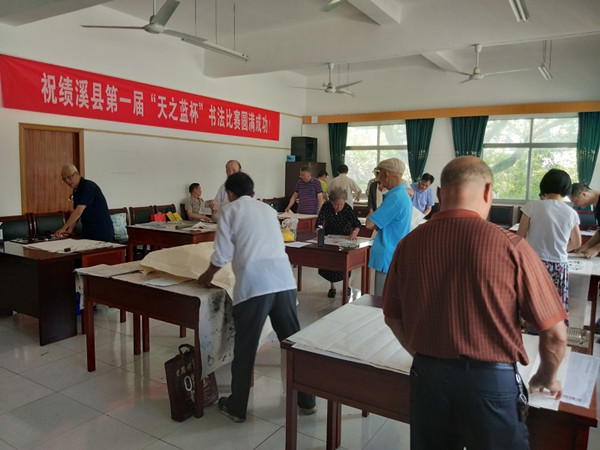 6月16日,运筹已久的绩溪县“天之蓝杯”离退休干部书法交流活动在老干部活动中心正式拉开帷幕,活动的主题是“以书陶冶情操、以笔感悟人生”。下午两点左右,20余名离退休老年书法爱好者们就带着自己心爱的墨笔和“我看脱贫攻坚新成就”等书法内容陆续来到现场,精心裁剪宣纸为即将落笔的作品做好充分准备。他们在书法“全面建成小康社会;抓党建促脱贫攻坚促乡村振兴、精准扶贫、合力脱贫攻坚、全面落实两不愁三保障及饮水安全;依法科学有序防控坚决遏制疫情扩散”等作品时皆是下笔稳中带劲,行云流水,收放自如,书法字体也各有千秋,有行书、楷书、隶书、魏碑楷体,还有别出心裁的空心书法,各具其美,各具特色。80多岁高龄的书法爱好者也下笔遒劲,运笔豪放,抒发出对美好生活的无限热爱?;疃蛊莱隽艘弧⒍?、三等奖。