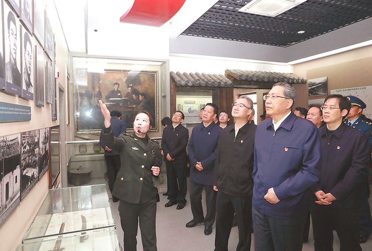 红二十五军于1931年10月在金寨麻埠组建,1932年11月底重建,是鄂豫皖苏区的一支主力部队,被誉为“长征先锋”。来到红二十五军军政机构旧址,李锦斌、王清宪、张昌尔等在一幅幅泛黄的黑白照片中,重温一段段刻骨铭心的革命故事。李锦斌强调,大别山区革命历史悠久,红色文化厚重。要充分利用好红色资源,讲述好红色故事,教育引导广大党员干部从党史中汲取持久深厚的奋斗之力,坚定不移听党话、跟党走,以身许党许国、报党报国。