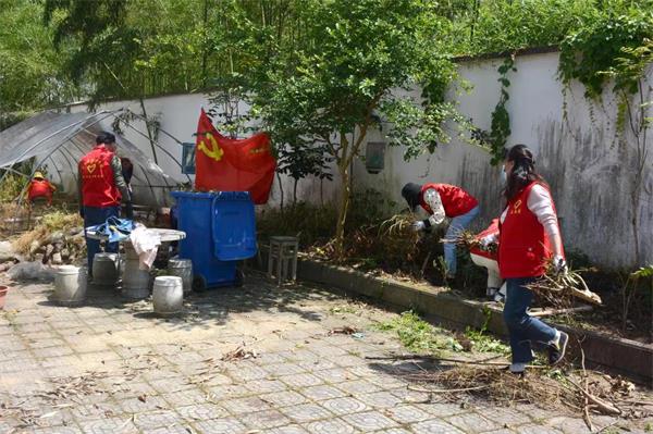 5月16日,绩溪县金沙学校全体党员在校党支部书记带领下,向校园偏远地带的脏乱差区域进发,参加该校组织的全校性校园环境卫生大整治活动。