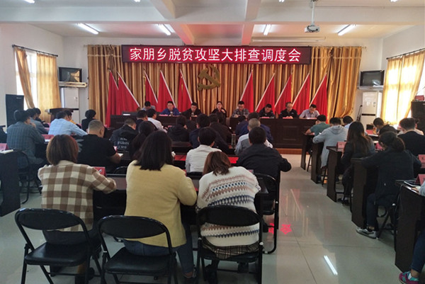 10月6日上午,家朋乡召开脱贫攻坚大排查工作调度会,乡党委班子成员、全体乡干部,各村党组织书记、扶贫专干参加会议。