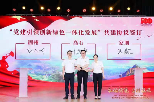 活动中,王毅书记代表家朋乡与岛石镇、荆州乡签订了“党建引领创新绿色一体化发展”共建协议。今后,三地将着力构建长期密切关系,优势互补,资源共享,共促乡村振兴,实现共同富裕。