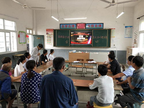 除了说党史之外,家朋乡还充分利用家朋学校集中安置点内多媒体硬件设施,设立“红色观影厅”,组织群众一起看红色电影。每每到剧情关键点,“观影厅”内都响起大家或激动或感动或愤慨的讨论。