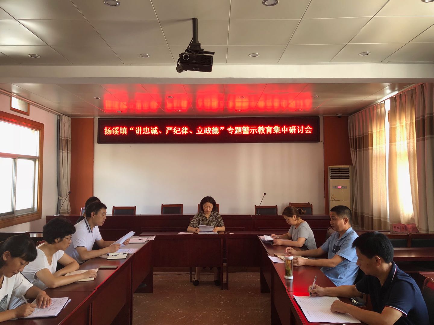 8月6日上午,扬溪镇召开党委理论学习中心组(扩大)学习会暨“讲严立”专题警示教育集中研讨会,镇副科级以上干部参加了会议。
