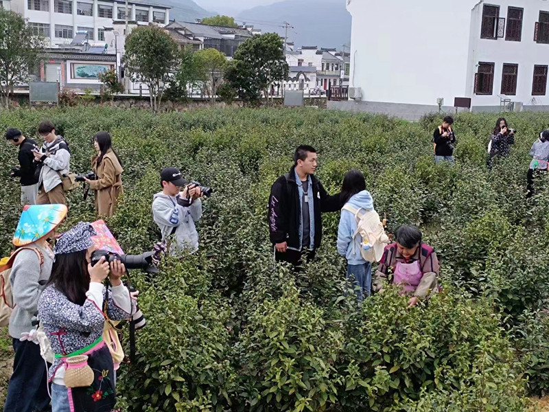 突出基地成效,深化“社会实践”合作成果。3月21日,上海东海职业技术学院的75名影视传媒专业学生和4名老师来到上庄,开展为期四天的社会实践活动。在此期间,上庄镇安排专人与高校团队负责人一对一联系,全程对接,先后在传统古村落,徽墨、徽雕、绢花企业,金山时雨茶园,茶叶加工厂等地开展了实践学习,详细介绍本地人文和特色产业,全程为师生提供安全保障等服务。学生们利用专业设备和技术,拍摄制作出高质量的照片视频,通过官方视频号、校园公众号等多种渠道发布,为上庄宣传代言,收获了大量点赞和关注,将实践合作转化为实际成果。