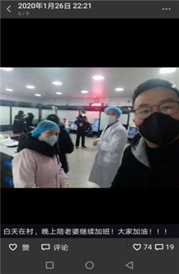 1月26日朋友圈:“白天在村,晚上陪老婆继续加班,大家加油!”